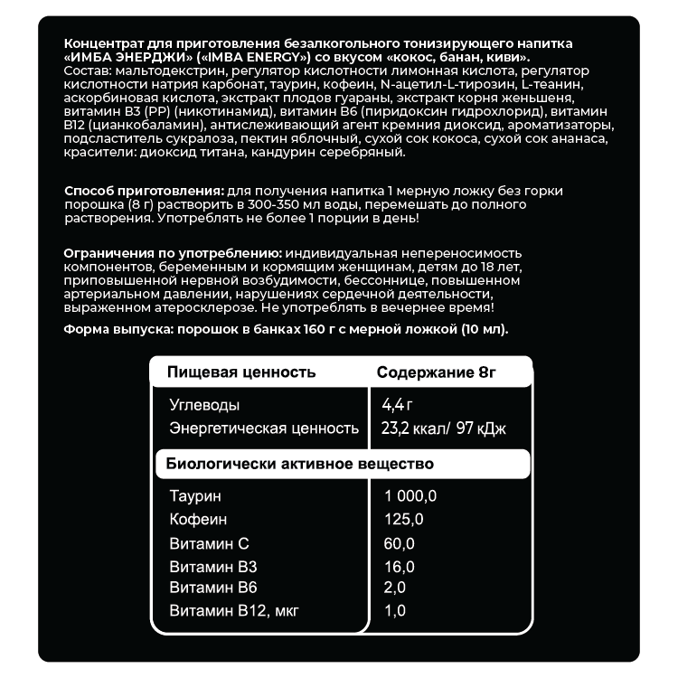 Компактная упаковка, которая содержит 20 порций крафтового энергетика ИМБА.