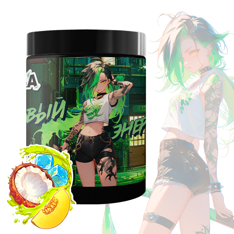 Ингредиенты: мальтодекстрин, регулятор кислотности лимонная кислота, таурин, регулятор кислотности карбонат натрия, кофеин, ароматизаторы, пектин яблочный, кремния диоксид, сухой сок ананаса, сухой сок дыни, N-ацетил-L-тирозин, подсластитель сукралоза, L-теанин, аскорбиновая кислота, экстракт плодов гуараны, экстракт корня женьшеня, витамин B3 (РР) (никотинамид), красители: диоксид титана и “Тартразин”, витамин В6 (пиридоксина гидрохлорид), витамин В12(цианокобаламин).