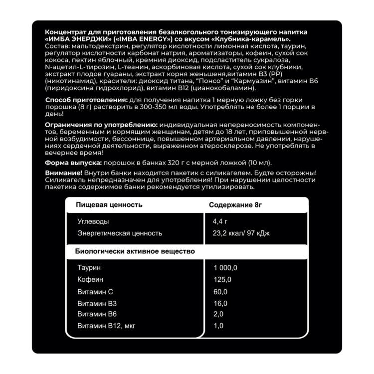 Энергетик ИМБА Клубника-Карамель 40 порций
