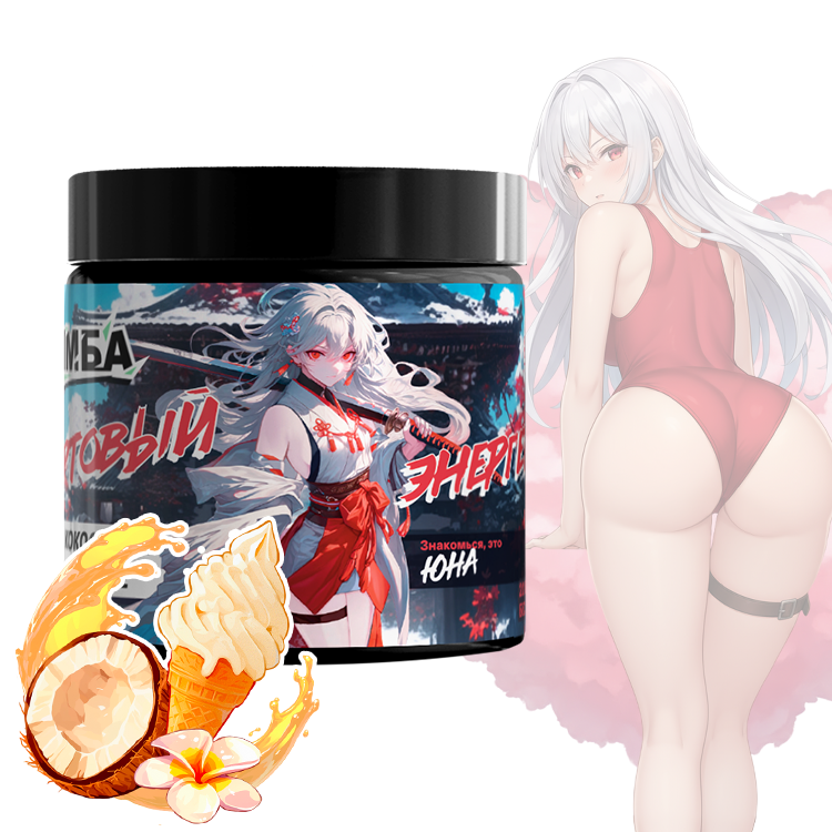 Ингредиенты: мальтодекстрин, регулятор кислотности лимонная кислота, таурин, регулятор кислотности карбонат натрия, ароматизаторы, сухой сок кокоса, кофеин, пектин яблочный, кремния диоксид, подсластитель сукралоза, N-ацетил-L-тирозин, L-теанин, аскорбиновая кислота, экстракт плодов гуараны, экстракт корня женьшеня, витамин B3 (РР) (никотинамид), красители: диоксид титана, сахарный колер и “Солнечный закат”, витамин В6 (пиридоксина гидрохлорид), витамин В12 (цианокобаламин).