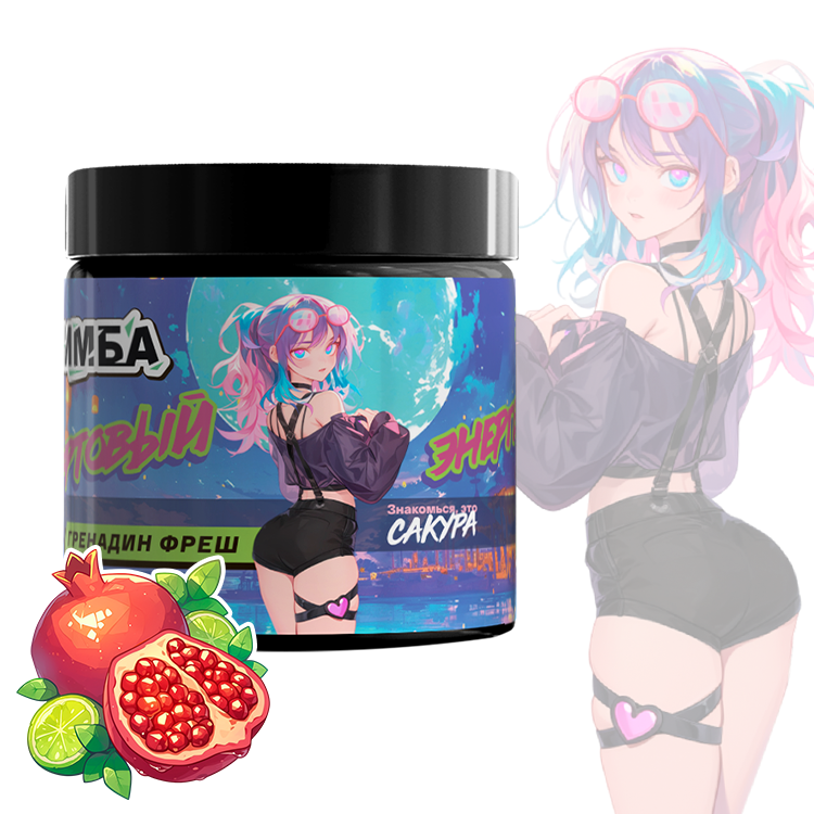 Ингредиенты: мальтодекстрин, регулятор кислотности лимонная кислота, таурин, регулятор кислотности карбонат натрия, ароматизаторы, кофеин, сухой сок граната, подсластитель сукралоза, пектин яблочный, кремния диоксид, N-ацетил-L-тирозин, сухой сок лайма, экстракт косточки грейпфрута, L-теанин, аскорбиновая кислота, красители: сахарный колер, “Кармуазин” и диоксид титана, экстракт плодов гуараны, экстракт горечавки, экстракт корня женьшеня,витамин B3 (РР) (никотинамид), витамин В6 (пиридоксина гидрохлорид), витамин В12(цианокобаламин).