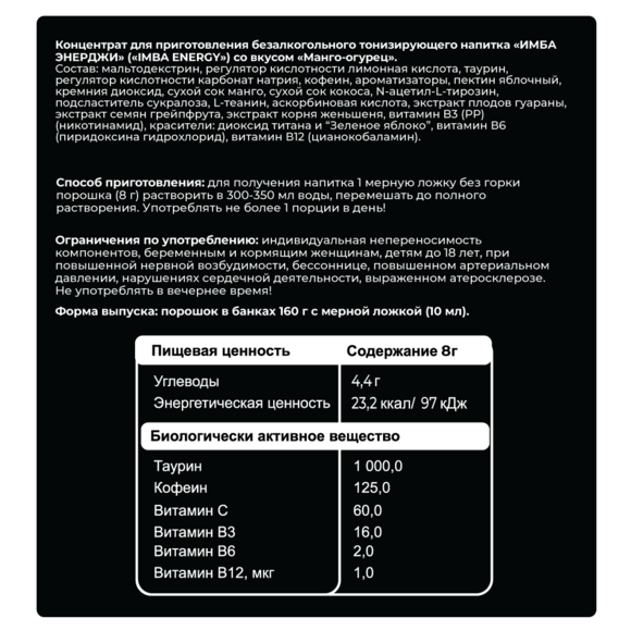 Энергетик ИМБА Манготини 20 порций