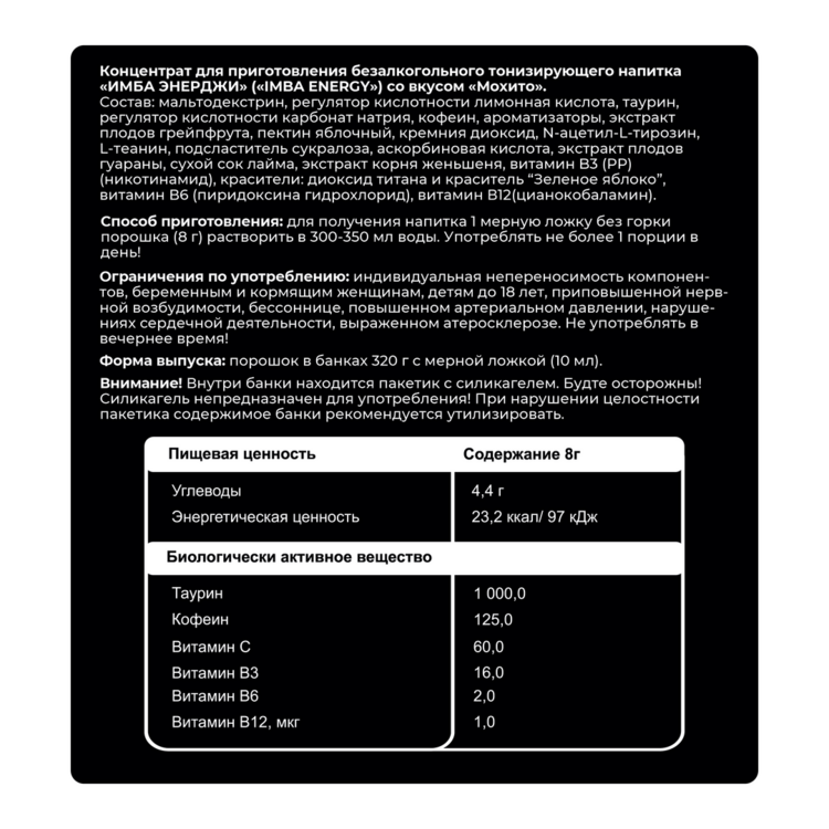 Энергетик ИМБА Мохито 40 порций SG