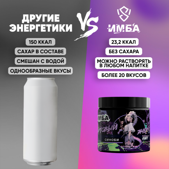 19.11.25ДанилБеру тут энергосы уже 3 или 4 раз, это обычно классика, мохито или яблоко киви, а тут что-то дернуло попробовать новое. В легендах нашел нашел вкус синоби и решил взять на пробу, как раз думал, что будет что-то кислое. И случилась любовь, вкус просто огонь! Мешаю с водой и со спрайтом, если хочу газированности. Для меня прям идеально сочетание кисл…ЕщёПолезный отзыв?Да 0Нет 0Ответ команды ИМБА