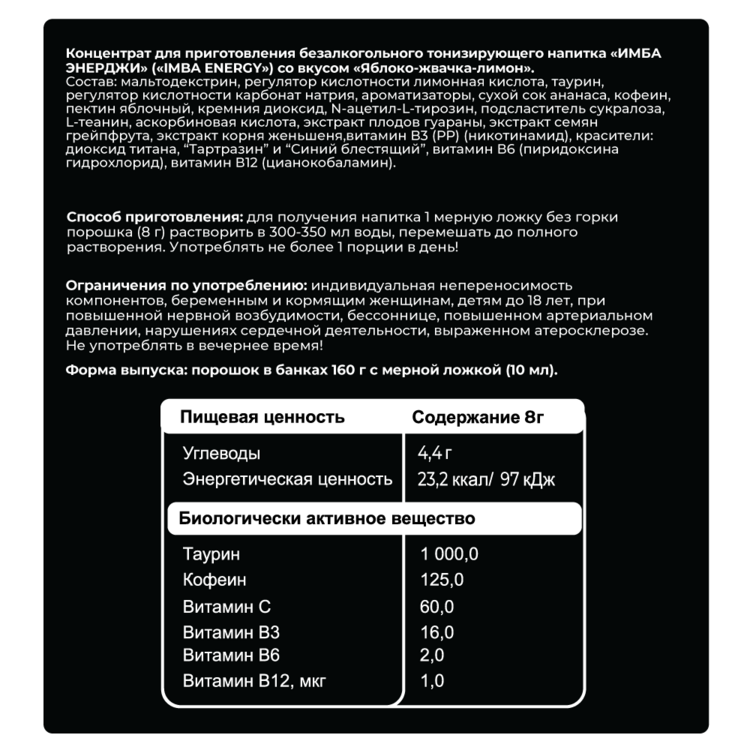 | Тип товара | Энергетический напиток |